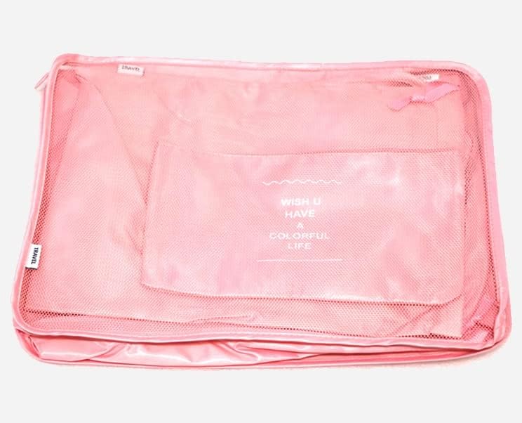 HELVAK - مجموعة شنط تخزين للسفر مكونة من 7 قطع اقتصادية لتنظيم امتعة السفر ضغط للملابس وشنطة لمستحضرات التجميل وادوات النظافة (بينك) متعدد الألوان، معدن، من هيلفاك