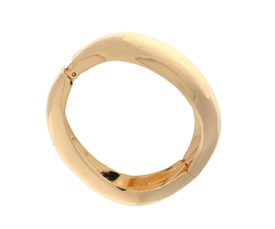 Hema Accessories - سوار عريض سميك من الستانلس ستيل مطلي بالذهب للنساء من هيما - DL-118