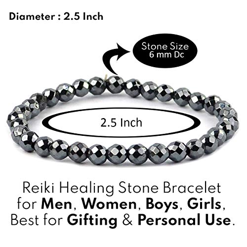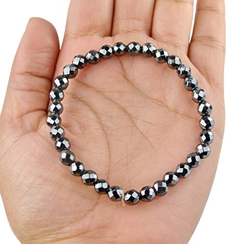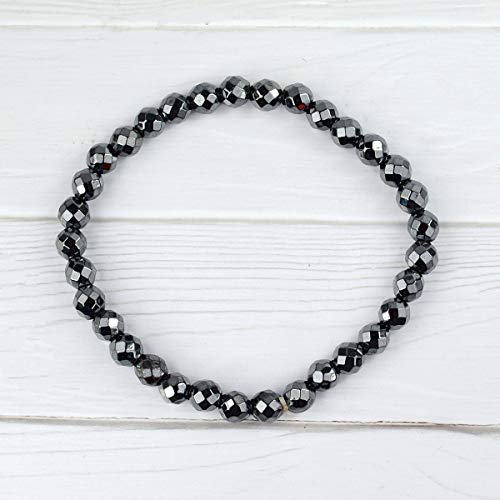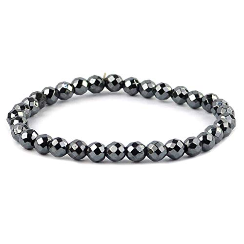 generic - سوار من حجر الدم الكريستالي الطبيعي 6 ملم، سوار خرز مقطوع بالماس بشكل دائري لعلاج الريكي وحجر الشفاء الكريستالي (اللون: فضي)، حجر كريستال طبيعي، حجر هيماتيت