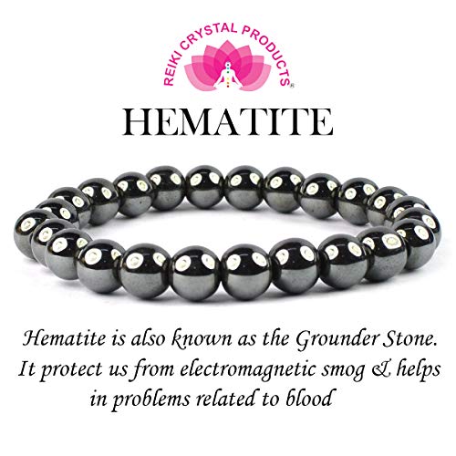 generic - سوار من حجر الدم الكريستالي الطبيعي 8 ملم، سوار خرز دائري الشكل لعلاج الريكي وحجر الشفاء الكريستالي (اللون: فضي) للبالغين من الجنسين