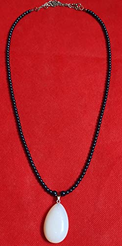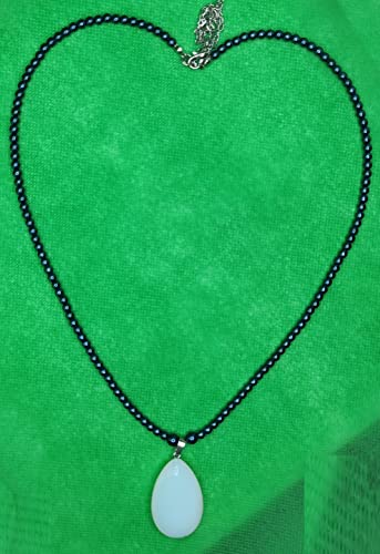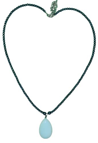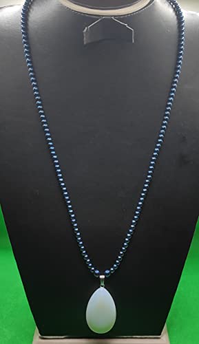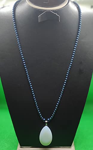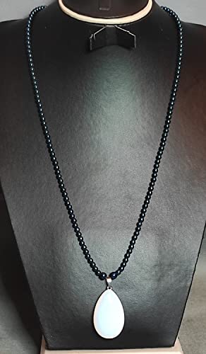 Generic - عقد من احجار الهماتيت والمون ستون-الوان ازرق في ابيض -دلاية من حجر العقيق الطبيعي-من مليكة للاكسسوارات