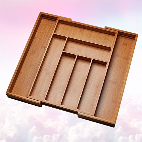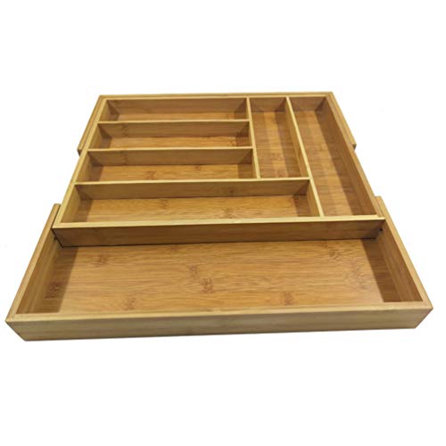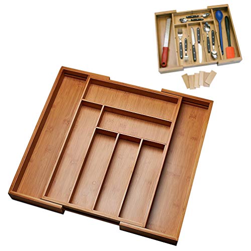 - منظم أدوات المائدة الفضية العريض القابل للتوسيع من الخيزران - صينية تخزين أدوات المطبخ المنزلية الجميلة، مما يجعل أدوات المائدة الخاصة بك منظمة ومنظمة.