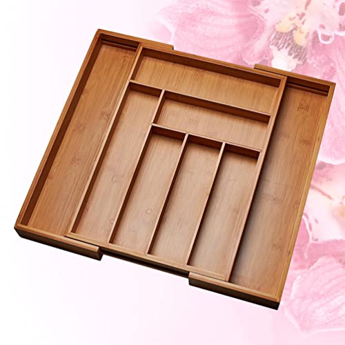Hemoton - هيموتون منظم ادراج مطبخ قابل للتوسيع: حامل ادوات المطبخ مكون من 6 اقسام الخيزران للادراج وادوات المائدة الفضية في