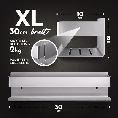 - أبعاد فريدة - حامل شامبو عريض للغاية للاستحمام (30 سم)، رف حمام بدون حفر يكفي لشخصين أو أكثر، 30 × 10 × 8 سم (العرض × العمق × الارتفاع)