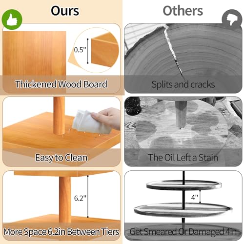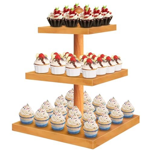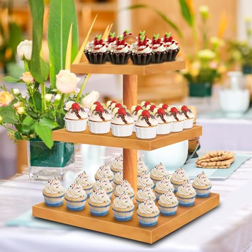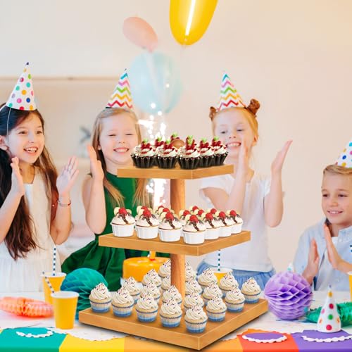 HENAYUK - حامل كب كيك خشبي مكون من 3 طبقات يتسع لـ 50 كب كيك بتصميم ريفي متعدد الطبقات ومجموعة عرض طاولة الحلوى، صواني تقديم الكب كيك لتزيين الحفلات والمزرعة من هينايك