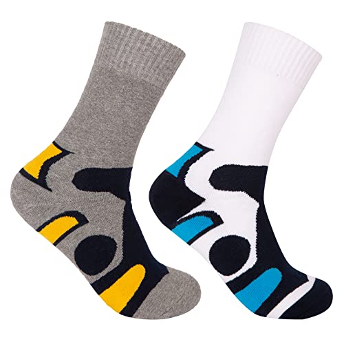 Hendam - جوارب هندام ، حزمة من 2 زوج من الجوارب القطنية الرياضية الطويلة للرجال ، أبيض + رمادي - مع رسم ، 41_45