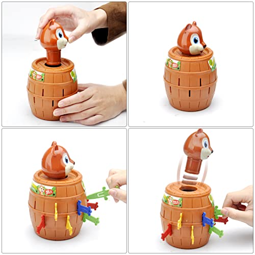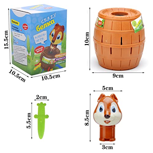 - تعليمات اللعبة: يقوم ما يصل إلى 4 لاعبين بالتناوب بتمرير السناجب الملونة بعناية في إحدى الفتحات الموجودة حول الصندوق. إذا تركت السنجاب يطير، فأنت خارج اللعبة. آخر لاعب على قيد الحياة يفوز باللعبة