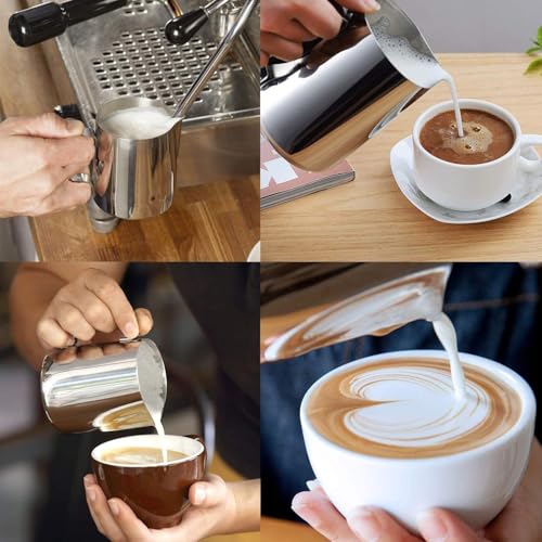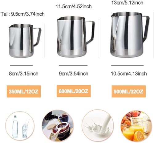 Hengdai - إبريق رغوة الحليب من الفولاذ المقاوم للصدأ، شفشق بخار قهوة الإسبريسو، قياسات على كلا الجانبين، أدوات باريستا مثالية للاتيه آرت من هينجداي (341 ملليلتر)