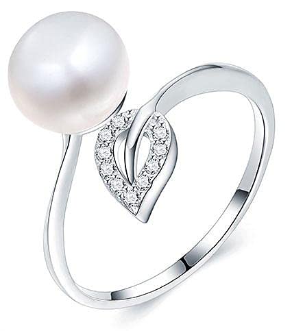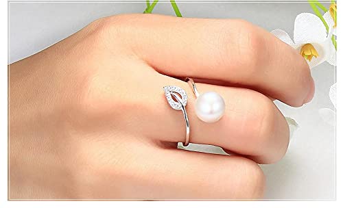 HENGSHENG - خاتم لؤلؤ طبيعي8-9 مليمتر من هنشنج قابل للتعديل هينغشنج للأنثى