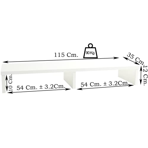 Henor - حامل تلفزيون خشبي اف اس سي® لرفع شاشة التلفزيون مقاس 115 × 35 × 12 سم من هينور، يدعم وزن 90 كجم، لون أبيض