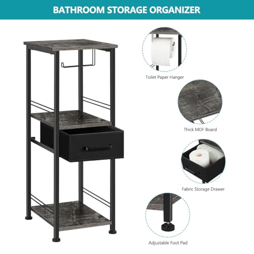 - 【سعة كبيرة】: يمكن لخزانة تخزين الحمام ذات الطبقات القائمة بذاتها مع درج وحامل ورق التواليت حمل أوراق المرحاض أو المناشف أو الشامبو أو الكتب أو أي أدوات تجميل أخرى في نفس الوقت. سيساعد رف تخزين الحمام الخاص بنا بشكل كبير في الحفاظ على حمامك أو غرفة المعيشة أنيقة ونظيفة.
