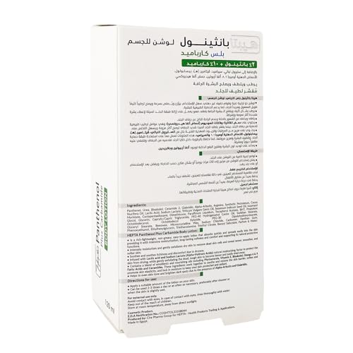 - لوشن الجسم هيبتا بانثينول بلس كارباميد - 120 غرام يجدد بشرتك ويحميها مع العناية المركزة بلوشن الجسم هيبتا بانثينول بلس كارباميد، تم تركيبه لتوفير ترطيب عميق وإصلاح حاجز البشرة ونعومة تدوم طويلاً. غني بمزيج قوي من البانثينول (برو-فيتامين بي 5) والكرباميد (اليوريا)، تم تصميم هذا اللوشن المتطور خصيصًا لتهدئة البشرة الجافة والخشنة والحساسة.