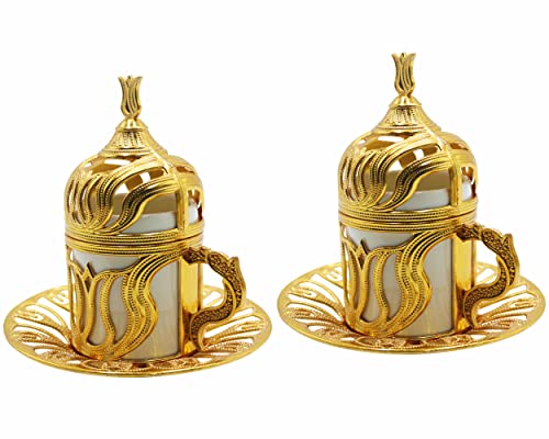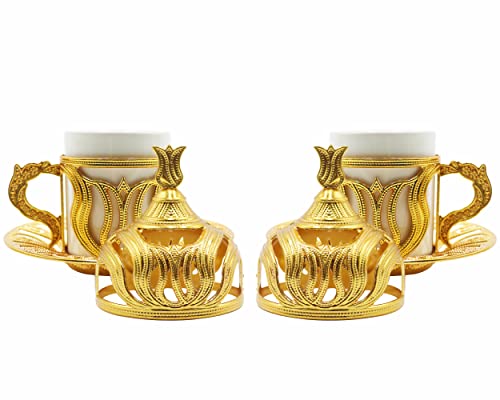 - ☕ مجموعة كاملة لتقديم القهوة التركية والاسبريسو التركية الفاخرة باللون الذهبي من هيرا كرافت - مجموعة من 10 قطع - مع قهوة تركية كلاسيكية 100 غرام، وعاء 215 مل، 2 كوب وصحون، 1 صينية تقديم بيضاوية، 1 وعاء سكر وغطاء، 4 ملاعق - الكل في واحد بفضل الغطاء تبقى القهوة ساخنة وسليمة!