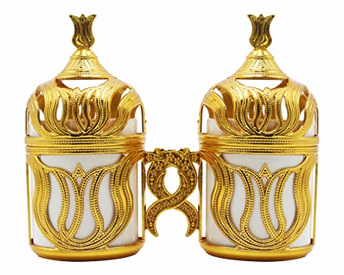 - ☕ قطعتان من أكواب البورسلين مع صحون وحوامل أكواب وأغطية، 1 صينية تقديم منقوشة، 1 وعاء سكر/تركي مع غطاء، ملعقتان معدنيتان، ملعقتان خشبيتان. 1 × 100 غرام قهوة تركية طازجة كلاسيكية. تتضمن مجموعة تقديم القهوة التركية المكونة من 10 قطع وعاء قهوة سعة 215 مل وكوبين وصينية و4 ملاعق بالإضافة إلى 100 غرام من القهوة التركية الكلاسيكية