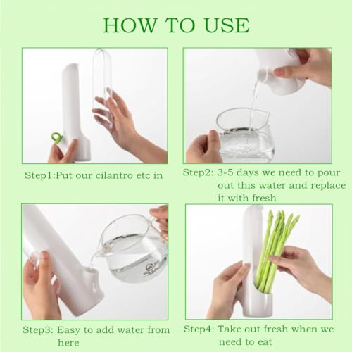 - 【كيفية الاستخدام】: اغسلي الكزبرة والنعناع والكزبرة والثوم المعمر والشبت والهليون، ثم ضعيها في كوب حفظ طازج، وأضيفي القليل من الماء العذب من خلال غطاء الكوب. يرجى تذكر تفريغ الماء القديم وتجديده كل 3 إلى 5 أيام.