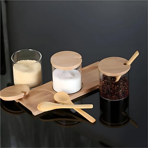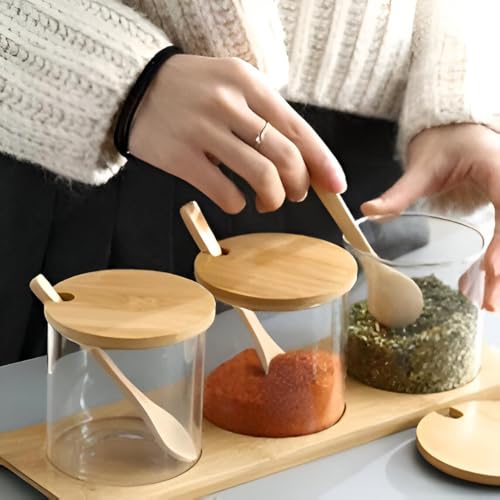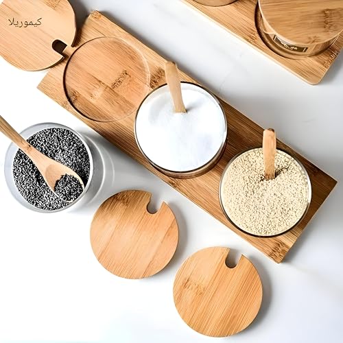- مصنوعة من زجاج عالي الجودة وعناصر الخيزران الطبيعي، تضمن المجموعة المتانة والمظهر الأنيق، مما يوفر حلاً عمليًا لتنظيم التوابل والضروريات المنزلية مع تعزيز نمط الديكور العام.