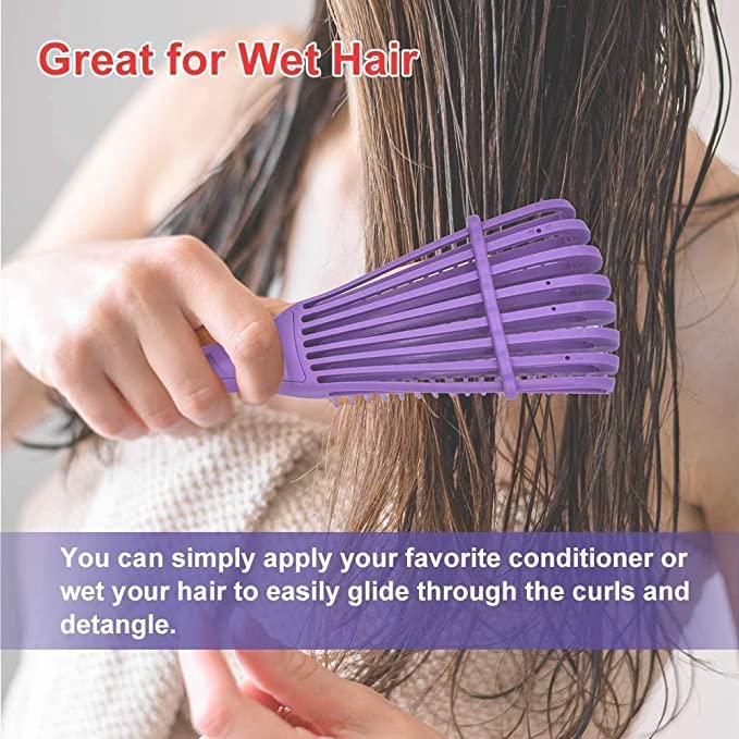 - فك تشابك الشعر بدون ألم بطريقة مبتكرة وذات جودة عالية، ستنساب الفرشاة المرنة بلطف خلال العقد مما يخلق احتكاكًا أقل من الفرش العادية مما يؤدي إلى تقليل تساقط الشعر وتقصفه