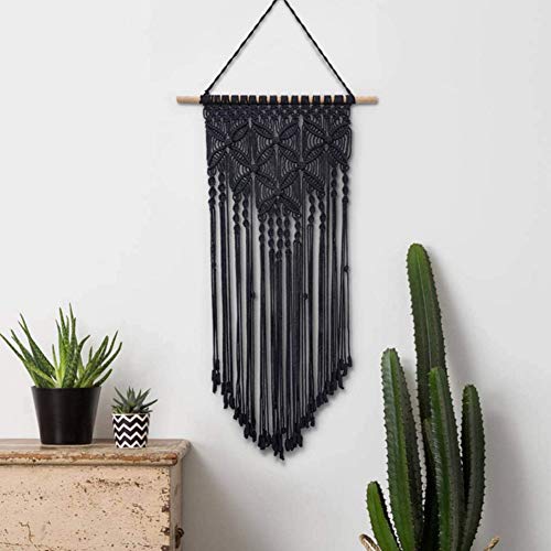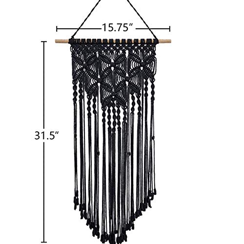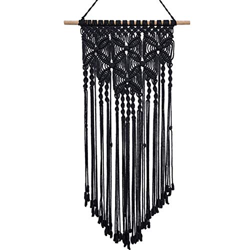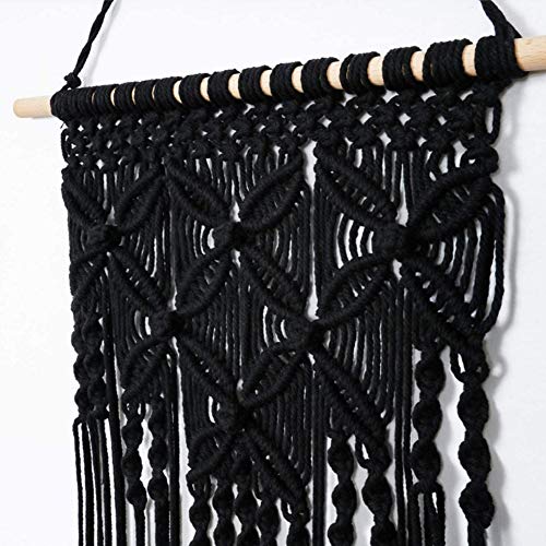 Herbests - قطعة فنية تعلق على الحائط مصنوعة يدويا من القطن بطريقة المكرمية بتصميم نسيج محبوك مستوحى من الفن البوهيمي، قطعة ديكور مع خشب طافي طبيعي لتزيين غرف المعيشة أو غرف النوم من هيربيستس، أسود