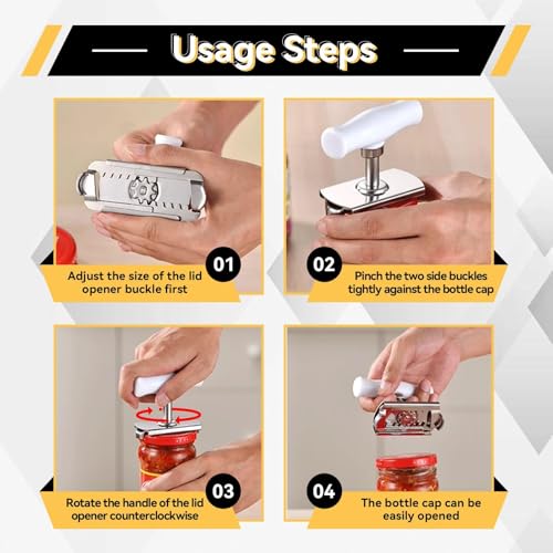 - ✔️ 【مقاومة للصدأ】فتاحة الزجاجات والبرطمانات الخاصة بنا مصنوعة من الستانلس ستيل مع مقبض بلاستيكي قوي يدوم طويلًا ولن يصدأ.