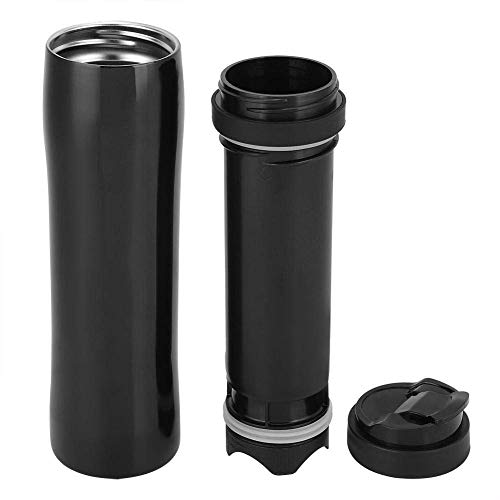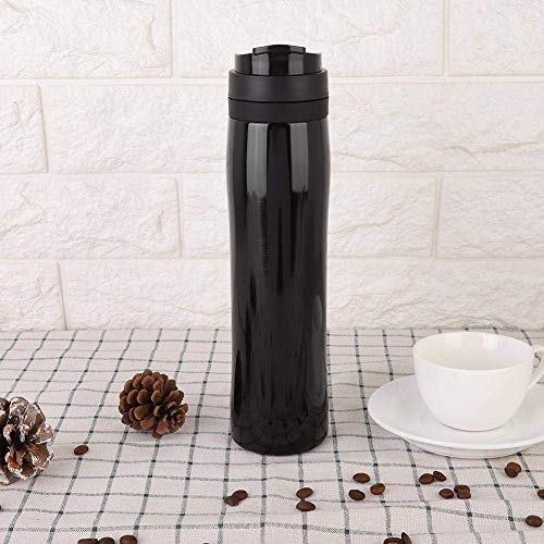 HERCHR - ماكينة تحضير القهوة الفرنسية بتصميم مج معزول محمول للقهوة والشاي مناسب للتخييم والسفر والاماكن الخارجية والمكتب سعة 12 اونصة /350 مل، أسود