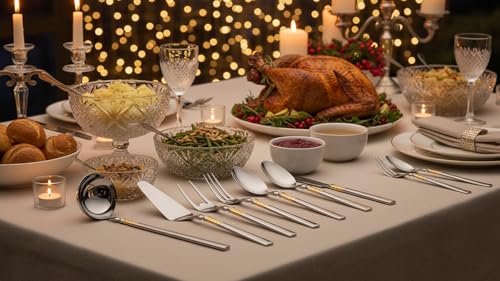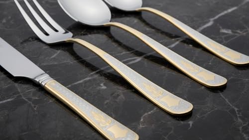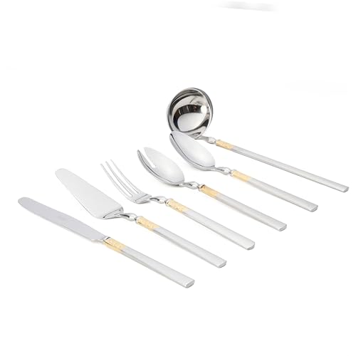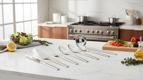 - 1× شوكة و1× ملعقة سباتولا و1× سكينة تقديم