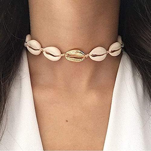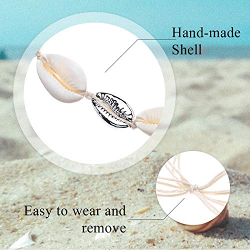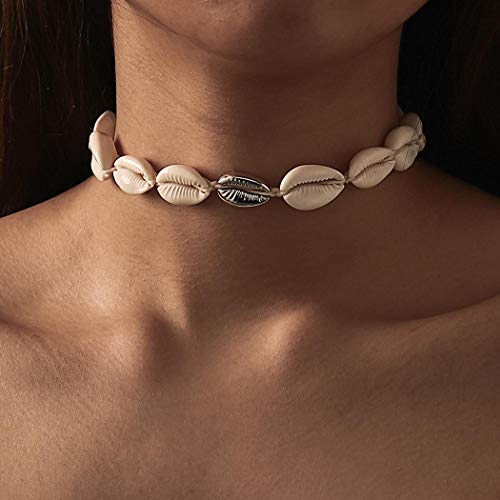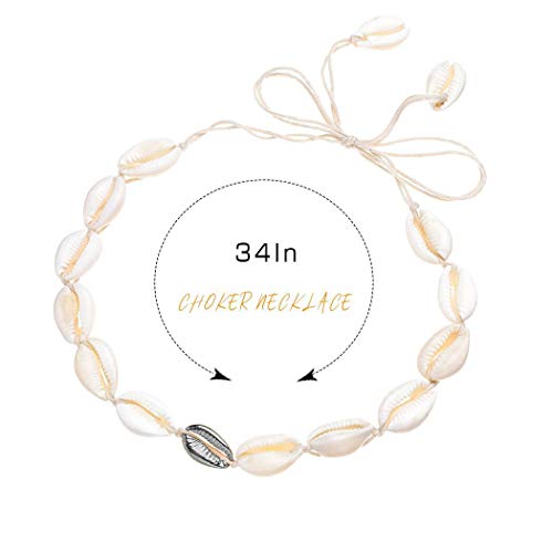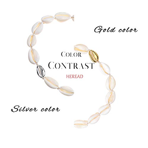 Heread - عقد ضيق ويستل بنمط بوهو بوكا بحبل مضفر ومزين بالصدف مناسب للشاطئ للنساء والفتيات بمقاس واحد لون فضي