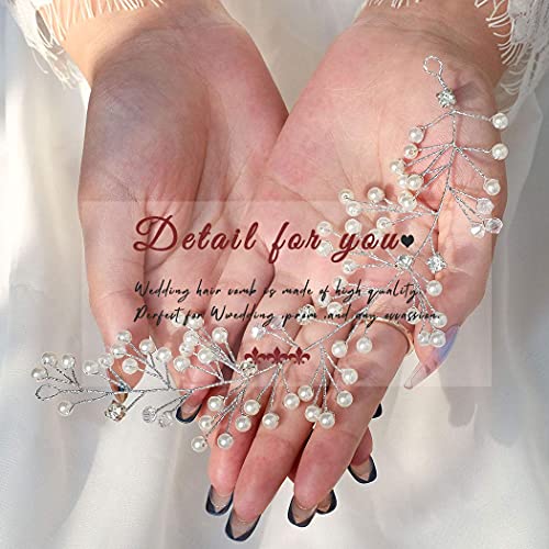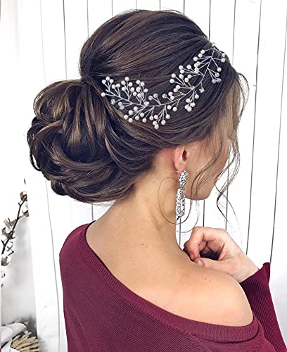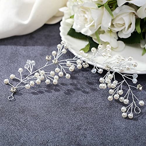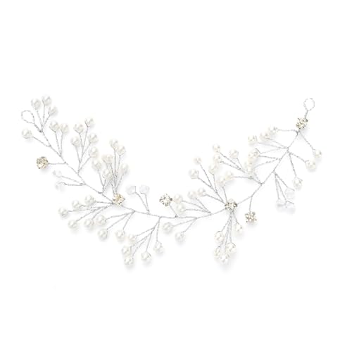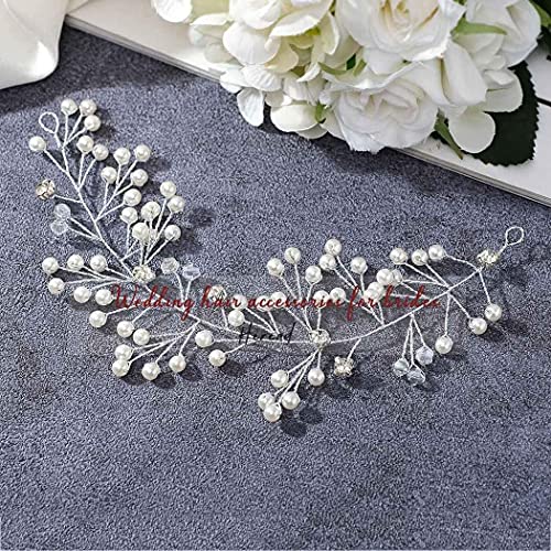HEREAD - عصابة رأس لحفلات الزفاف من اللؤلؤ الفضي والكريستال الفضي للعروس من هيراد، إكسسوارات للشعر للنساء والفتيات