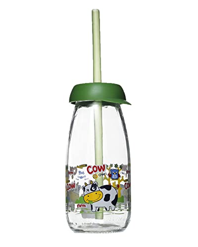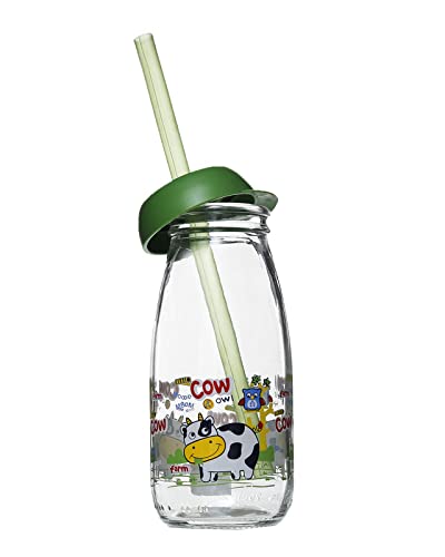Herevin - زجاجة مزينة برسومات وشفاطة من هيرفن، 250 مل، شفاف وأخضر 1