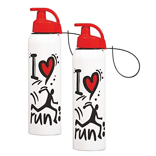 Herevin - هيرفن مجموعة من 2 زجاجة رياضية مع شماعة ماتارا - 750 مل اي لوف رن بلاستيك