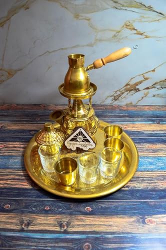 • يتألف الطقم من قطعتين رئيسيتين، وهما فنجانا زجاجيا وصينية سكرية من النحاس الصافي 100%