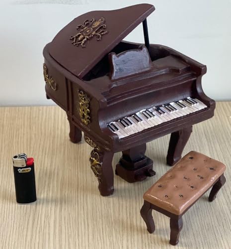 - التصميم الكلاسيكي: تمثال بيانو مصغر بلون بني داكن مع زخارف ذهبية أنيقة، يجسد الأناقة التقليدية