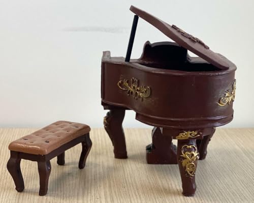 تمثال بيانو تراثي مصغر، زخرفة موسيقية، بني داكن مع تفاصيل ذهبية