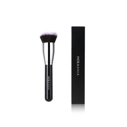 Hermania - فرشاة مكياج كبيرة مسطحة من هيرمانيا لمنتجات كريم الأساس السائل، جودة احترافية لوضع قاعدة مكياج خالية من العيوب، أداة مكياج بمقبض خشبي (مسطحة - F300)
