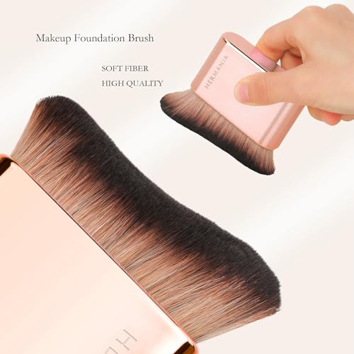 Hermania - فرشاة كريم أساس مسطحة كبيرة للوجه والرقبة والجسم والساقين من هيرمانيا، فرشاة برونزر ذاتية التسمير وهايلايتر لومينيزر أداة وضع المكياج الاحترافية (6.7 سم، وردي ميتاليك)