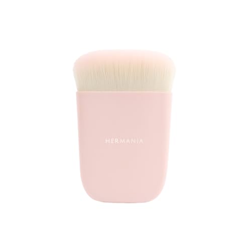 Hermania - فرشاة مكياج مسطحة، بشعيرات ناعمة وكثيفة، أداة صغيرة بحجم الجيب لكريم الأساس وأحمر الخدود والبرونزر والكونتور من هيرمانيا (وردي فاتح)