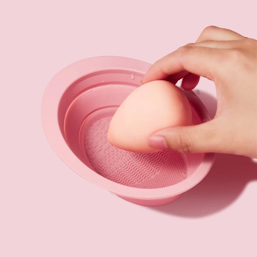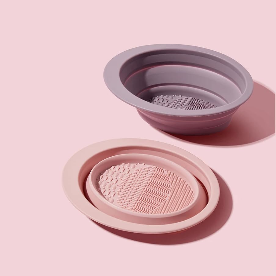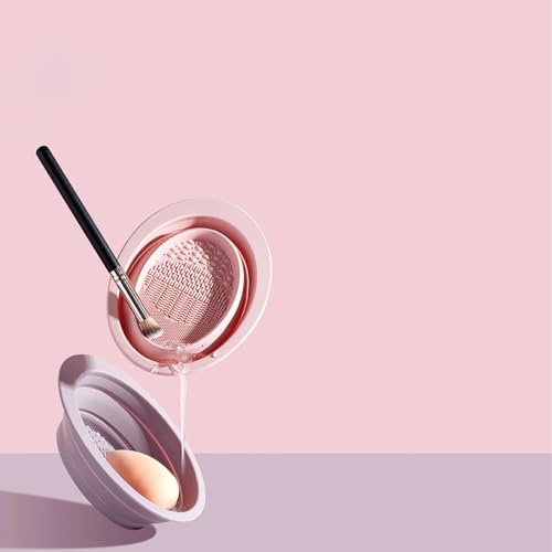Hermania - وعاء سيليكون لفرش المكياج من هيرمانيا قابل للطي، ادوات تجميل، اسفنجة مزج واسفنجة مساحيق للتنظيف العميق، حوض محمول (بينك)، زهري