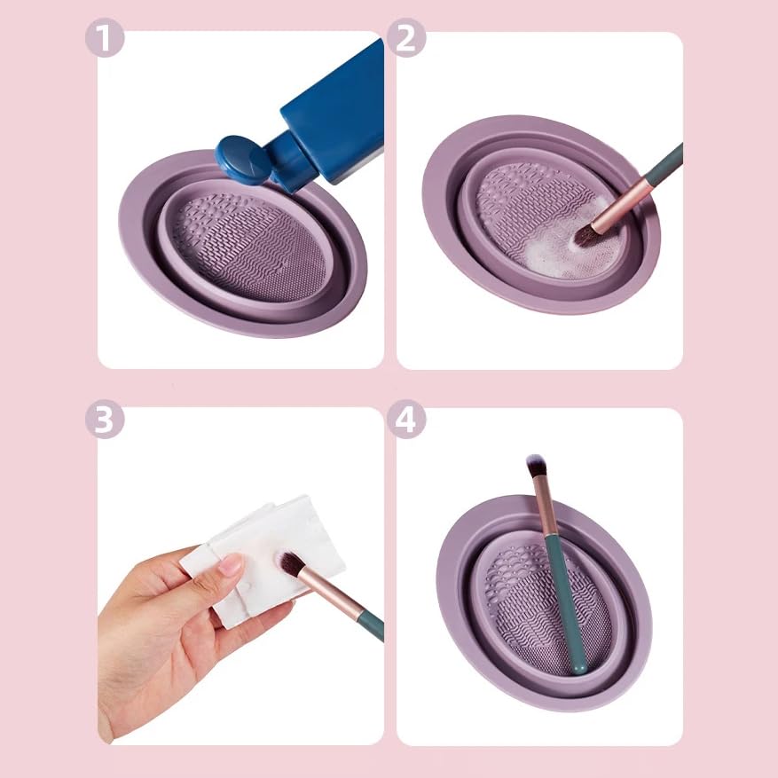 - أداة تنظيف متعددة الاستخدامات: تم تصميم حوض السيليكون لتنظيف مجموعة متنوعة من أدوات المكياج بما في ذلك الفرش والإسفنجات، وذلك بفضل الأشكال الأربعة المختلفة المزخرفة من الأسفل.
