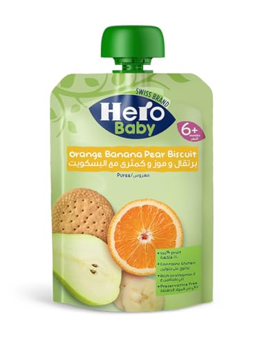 Hero Baby - مهروس برتقال وموز وكمثري بالبسكويت من هيرو بيبي، 100 جم