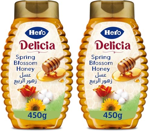 Hero - عسل زهور الربيع ديليسيا قابل للضغط من هيرو - 450 جم (عبوة من 2 قطعة)