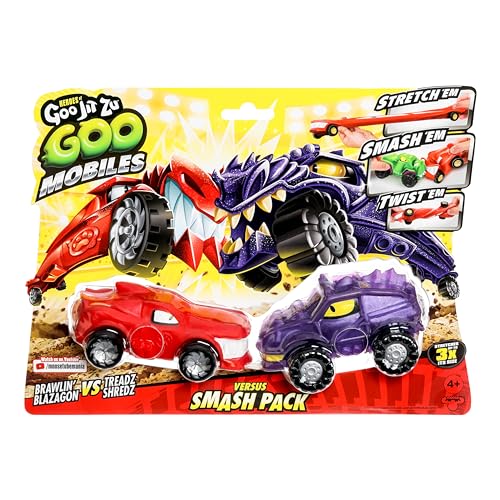 moose toys - مجموعة ألعاب سيارات جو موبايلز من هيروز اوف جود جيت زو سيارتان قابلتان للتمدد والسحق ستريتش 'ايم، سماش 'ايم، تويست 'ايم!
