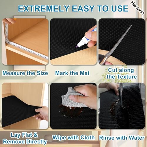 - هل ما زلت تضيع الوقت في عملك المنزلي؟ هل سئمت من تنظيف الجزء الداخلي من الأدراج والأرفف في الخزائن أو الثلاجة أو غرفة الغسيل؟ جرب بطانات أرفف الأدراج من هيرسفين للمساعدة في توفير الوقت الثمين وتوفير الأثاث الثمين! السجادة مصنوعة من مادة ايفا ويمكن استخدامها كبطانة وواقي للأدراج والخزائن ورفوف المطبخ وأرفف الكتب والخزائن وغيرها من الأثاث. يمكن قصه حسب المقاس لحماية الزجاج والخشب والبلاستيك والأسطح الأخرى. قابلة للإزالة ومقاومة للماء وقابلة للمسح وإعادة الاستخدام حتى لا تضطر أبدًا إلى مسح الأسطح المحمية مرة أخرى.