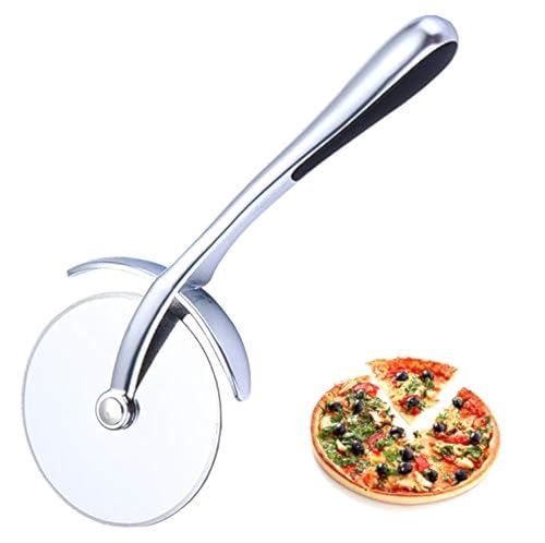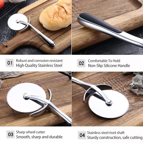 HERUIO - قطاعة البيتزا بعجلة تقطيع بشفرة حادة من ستانلس ستيل ومقبض سيليكون مقاوم للانزلاق سهلة التنظيف للغاية