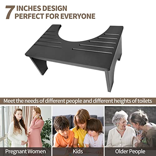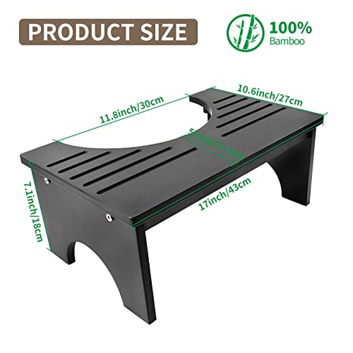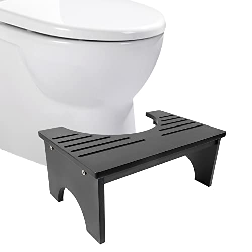 Hervimo - كرسي مرحاض من خشب الخيزران للبالغين والأطفال، كرسي مرحاض للحمام بارتفاع 18 سم مع بساط مضاد للانزلاق، كرسي خشب للمرحاض لجلوس القرفصاء، مسند للقدمين من هيرفيمو، لون أسود
