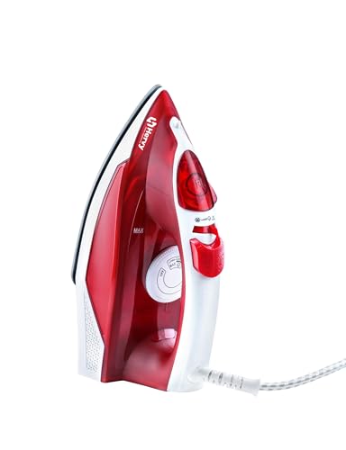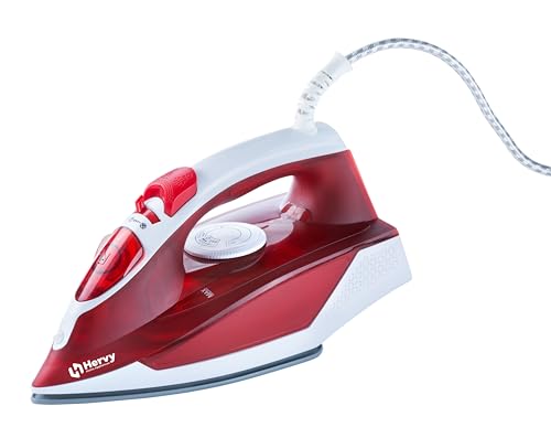 Hervy - مكواة بخار من السيراميك من هيرفي، 2200 وات، 4 مستويات لدرجة الحرارة، خاصية منع التنقيط، ذاتية التنظيف، لون أحمر