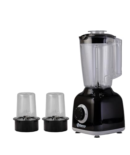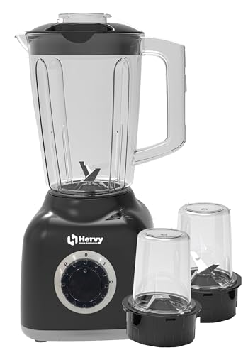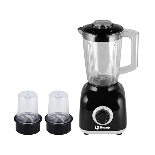 Hervy - خلاط ماكسي من هيرفي سعة 1.6 لتر وقدرة 400 وات، بسرعتين + توربو مع مطحنتي توابل (أسود)