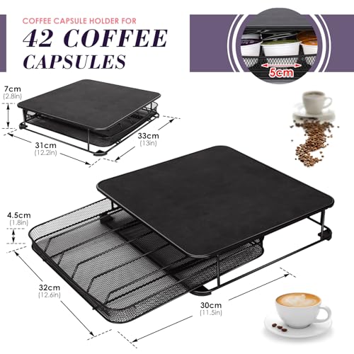 - 【أدراج تخزين كبسولات】 يتميز حامل كبسولات القهوة بتصميم درج فريد يسمح لك بوضع كبسولات القهوة وإزالتها بسهولة. توفر بيئة تخزين أكثر استقرارًا وصغيرًا دون خطر سقوط الكبسولات، ولن يشغل الحجم المناسب الكثير من المساحة الخاصة بك، يلبي احتياجاتك اليومية بالكامل، وهو أمر لا غنى عنه لتخزين كبسولات القهوة وأكياس الشاي وأكثر من ذلك.