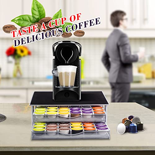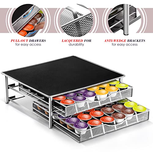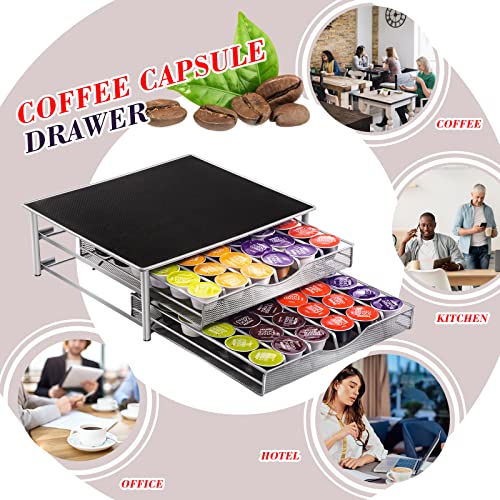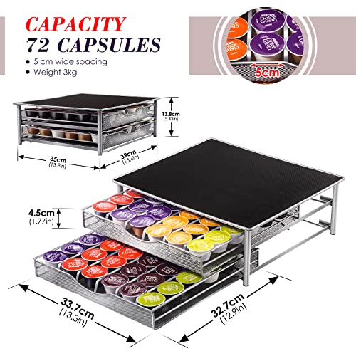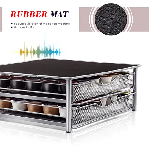 HEVOL - حامل كبسولات قهوة دولتشي جوستو من هيفول بدرج كبسولات دولتشي جوستو، حامل ماكينة تحضير القهوة و2 درج منزلق لتخزين كبسولات دولتشي جوستو للمطبخ والمكتب، رمادي فضي
