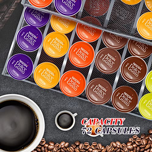- ☕[مادة عالية الجودة]: حامل تخزين كبسولات دولتشي جوستو مصنوع من حديد عالي الجودة بسطح مطلي، متين وليس من السهل أن يتآكل، ويمكن أن يتحمل وزن ماكينة تحضير القهوة. يمكنك وضع ماكينة تحضير القهوة والأكواب على حامل كبسولات القهوة لتوفير المساحة والاستمتاع بقهوتك في أي وقت.