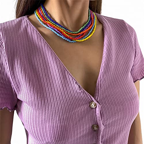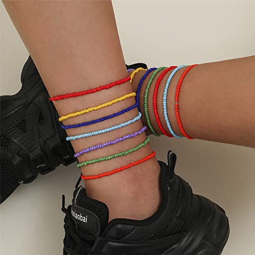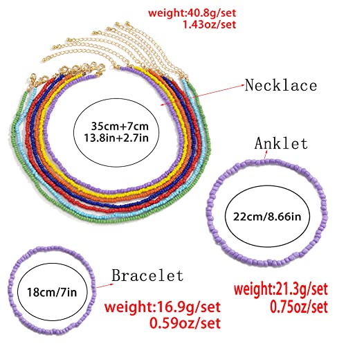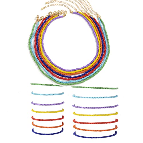 Hewill - 21 قطعة من قلادة الخرز الملونة وسوار الكاحل والخرز البوهيمي مجموعة قوس قزح سوار خلخال للنساء الرجال الفتيات مجوهرات هدية هيويل متعدد الألوان معدن