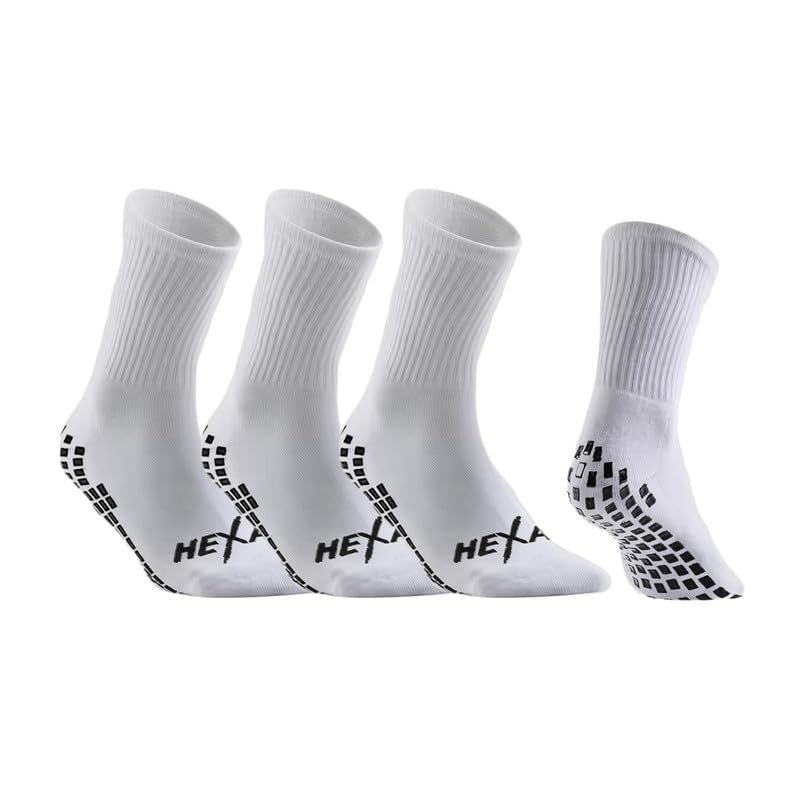 HEXA - شرابات سيليكونية مانعة للانزلاق (عبوة من 3 أزواج) – إمساك عالي الجودة للرياضات المختلفة – مصنوعة من القطن والإيلاستين والسيليكون – مثالية للرياضات الفردية والجماعية من هيكسا
